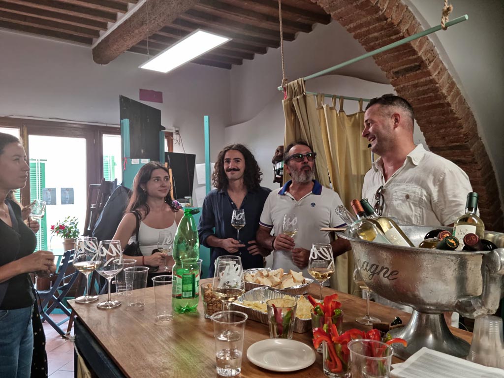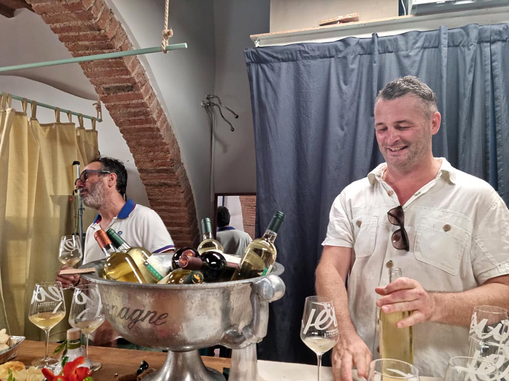 La celebrazione è stata un ringraziamento ai belli ospiti che hanno sostenuto attivamente il progetto negli ultimi mesi. Per questo motivo, c’era un Frizzante regionale frizzante a questa vernissage gioiosa! Curiosità: Questo meraviglioso vino bianco frizzante è quasi arrivato in ritardo per l’apertura, poiché l’email d’ordine è finita nella cartella spam ultra-intelligente di Gmail. Il fondatore Stephan Daniel lo prende con calma: “L’IA si è così autoesclusa con il suo primo lavoro di prova. Collaborazione scadente. Probabilmente non offrirò un contratto all’IA. Perché chi smista l’ordine dei vini per l’inaugurazione nella cartella spam, probabilmente non creazione di un a bellissima asola fatta a mano - bottone per bottone!”
